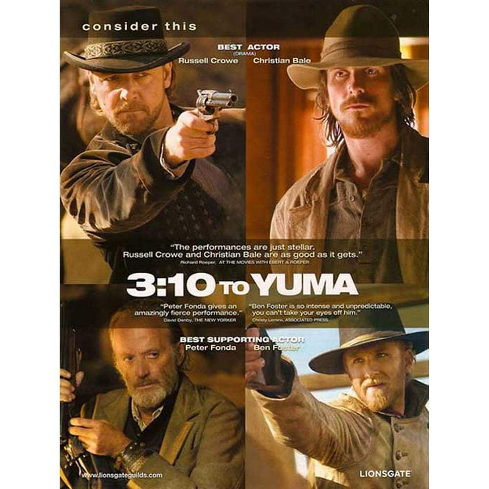 Prime Video: 3:10 To Yuma. 2 nominaciones a los OSCAR®. 3:10 To Yuma. Un refrito del cásico western de 1957 con el mismo nombre. Protagonizan la película dos de los actores más populares de Hollywood, el ganador del Oscar, Russell Crowe (Gladiador) y Christian Bale (Batman inicia). En la película, un granjero (Bale) lucha para mantener su.