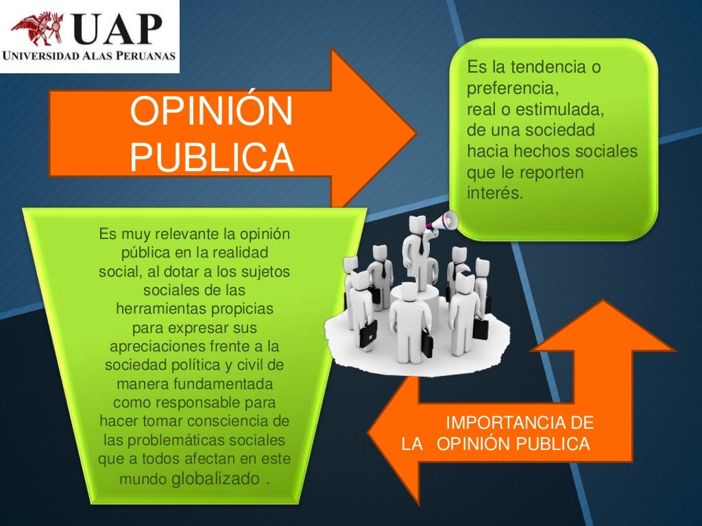 historia, características, y ejemplos. La opinión pública se define como el conjunto de creencias y valoraciones que se crean las personas sobre asuntos de interés común. En otras palabras, se trata de una construcción abstracta que representa la manera en que la sociedad ve al mundo y forma sus juicios. La opinión pública no es un.