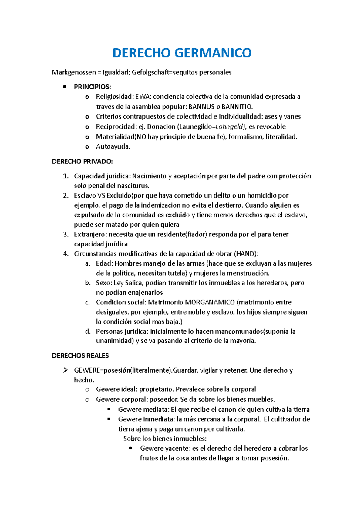 Derecho Germanicoexplicacion profesor DERECHO GERMANICO Markgenossen = igualdad; Studocu