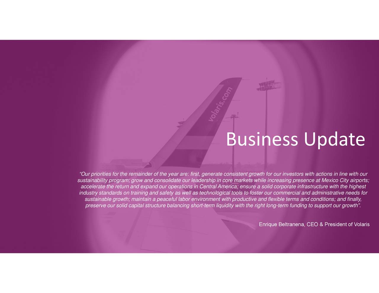 Established in 2006, the company provides scheduled passenger and cargo services between The United States, Central America and Mexico using a fleet of Airbus A320 family aircraft. The airline group made an Initial Public Offering in Sept-2013, dual listing on the NYSE (VLRS) and Mexico's BMV (VOLAR). Volaris Group consists of Volaris (Mexico.