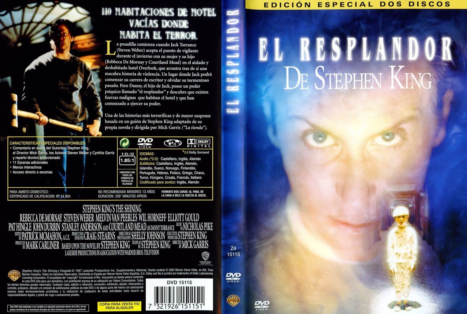 1997 205 miembros 1 temporada 3 episodios. Miniserie de televisión que adapta la novela de Stephen King, ya llevada a la gran pantalla por Stanley Kubrick en 1980. La pesadilla comienza cuando Jack Torrance acepta el puesto de vigilante durante el invierno con su mujer y su hijo en el aislado y deshabitado hotel Overlook, que arrastra tras de.