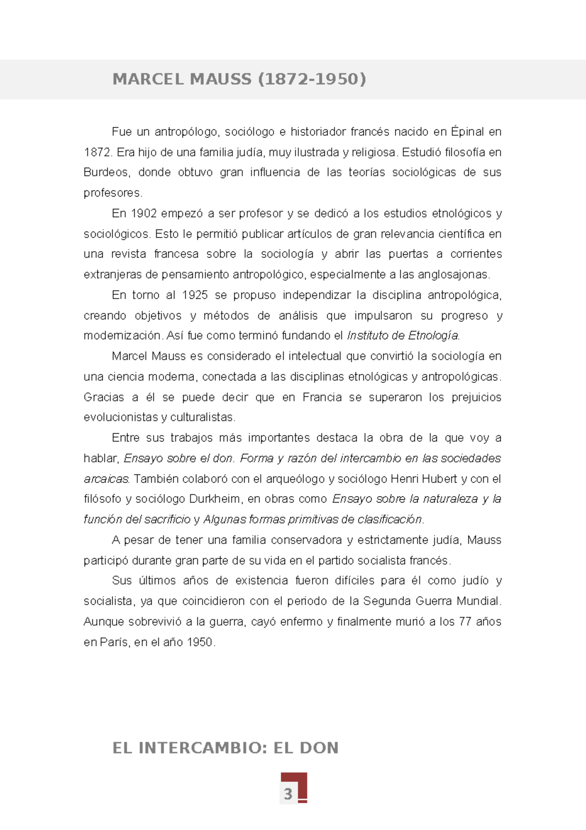 Ensayo Del Don Marcel Mauss MARCEL MAUSS ( 1872 195 0) Fue un antropólogo, sociólogo e