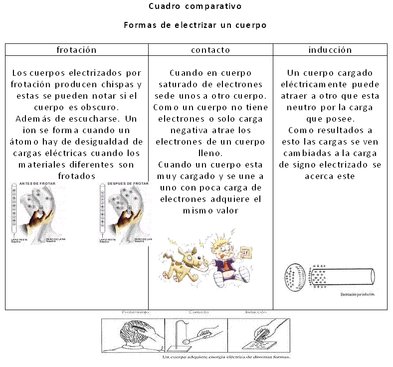 Cuadro de comparacion de formas de electrizar un cuerpo