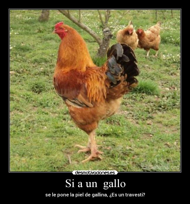 más sobre esta frase ››. "Cuando el gallo canta, la gente se levanta.". [Etiqueta: cantar, gallo ] La trovi in Comida y cocina. más sobre esta frase ››. "El perdigón y el gallo, por mayo.". [Etiqueta: comer, gallo, mayo, perdiz ] Frases sobre el gallo: frases y citas sobre el gallo del archivo de MundiFrases.com.