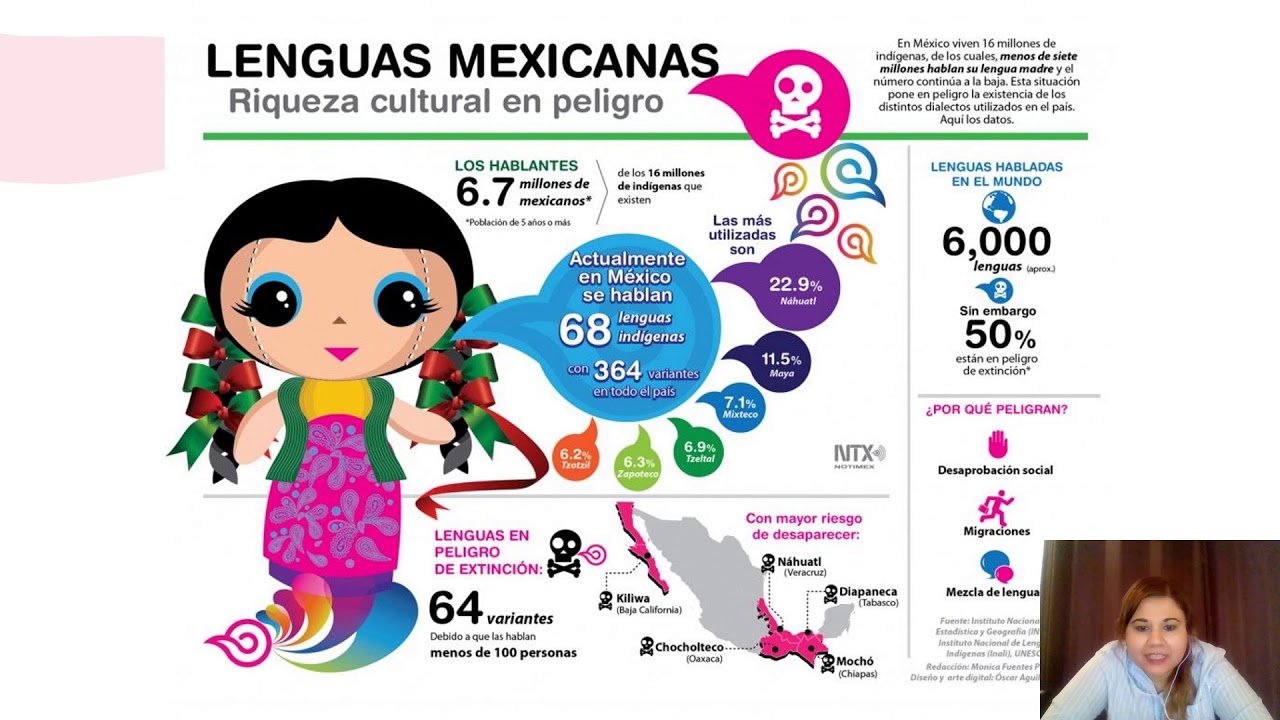 Preservar las diversidad lingüística de México es algo sumamente importante para no olvidar nuestra historia y raíces, mismas que son el legado de los ancestros y de los grupos étnicos que hoy en día resisten para no desaparecer. Sonia Guadalupe Martínez Cueva Analista SEO. Formada en Psicología y lenguas como inglés y francés.