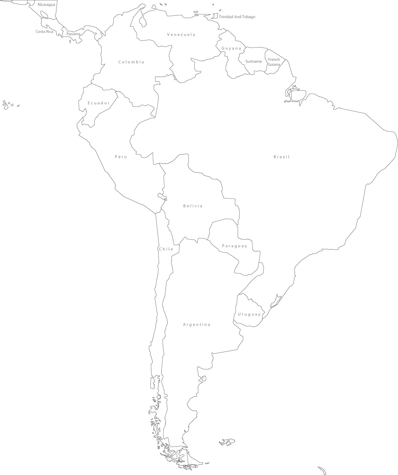 Mapa De America Del Sur En Blanco Y Negro