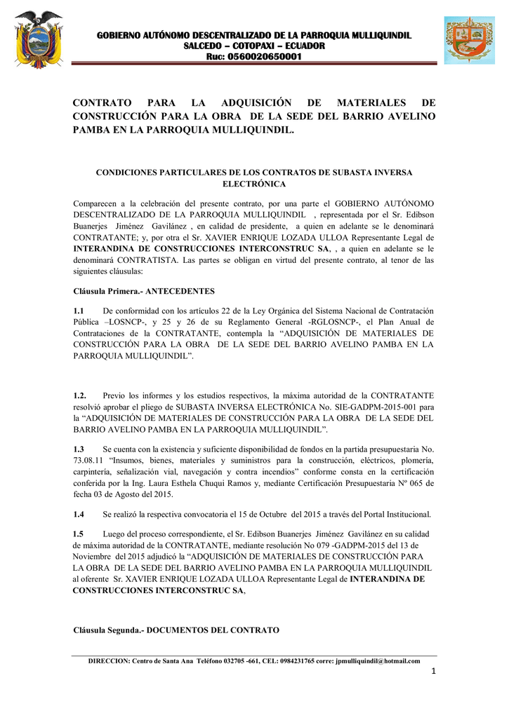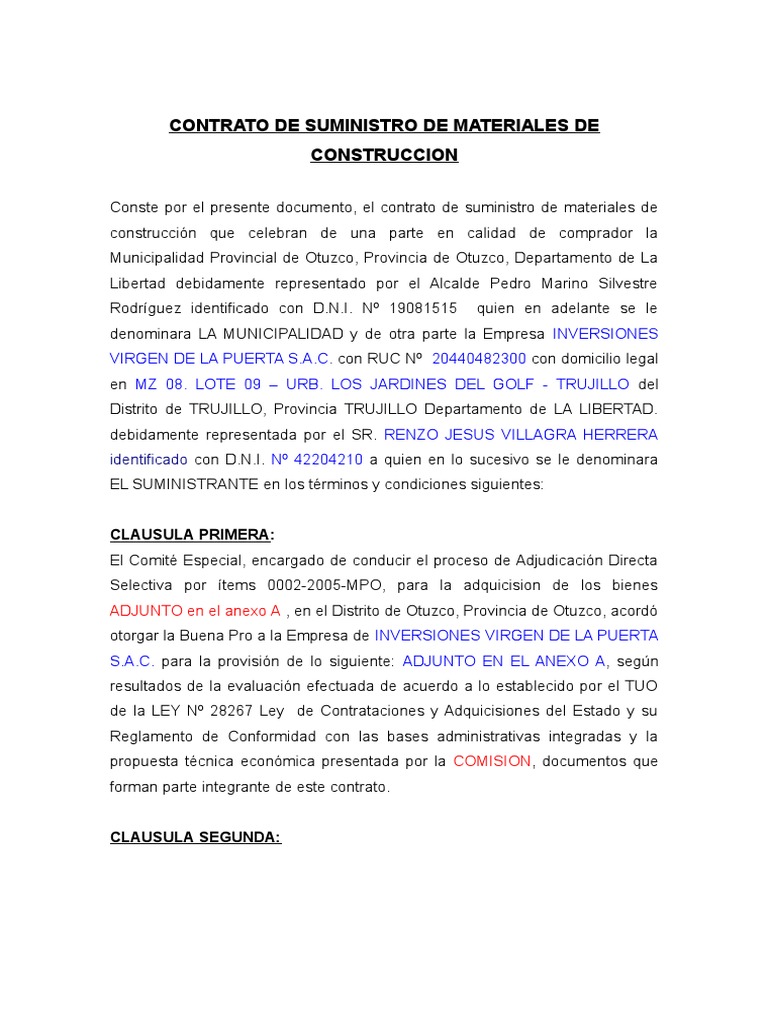 Contrato de Construcción Con Suministro de Materiales PDF Gobierno