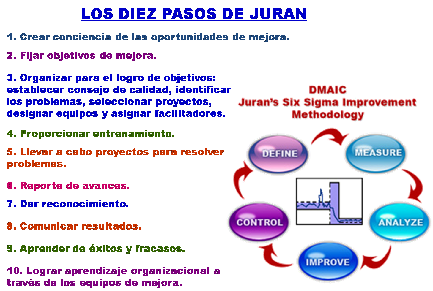 La hoja de ruta de la planeación de la calidad de Juran: Los pasos que se enuncian a continuación corresponden a la metodología de su filosofía: Identificar quiénes son los clientes. Determinar las necesidades de dichos clientes. Traducir esas necesidades al lenguaje de la organización. Desarrollar un producto (servicio) que responda a.