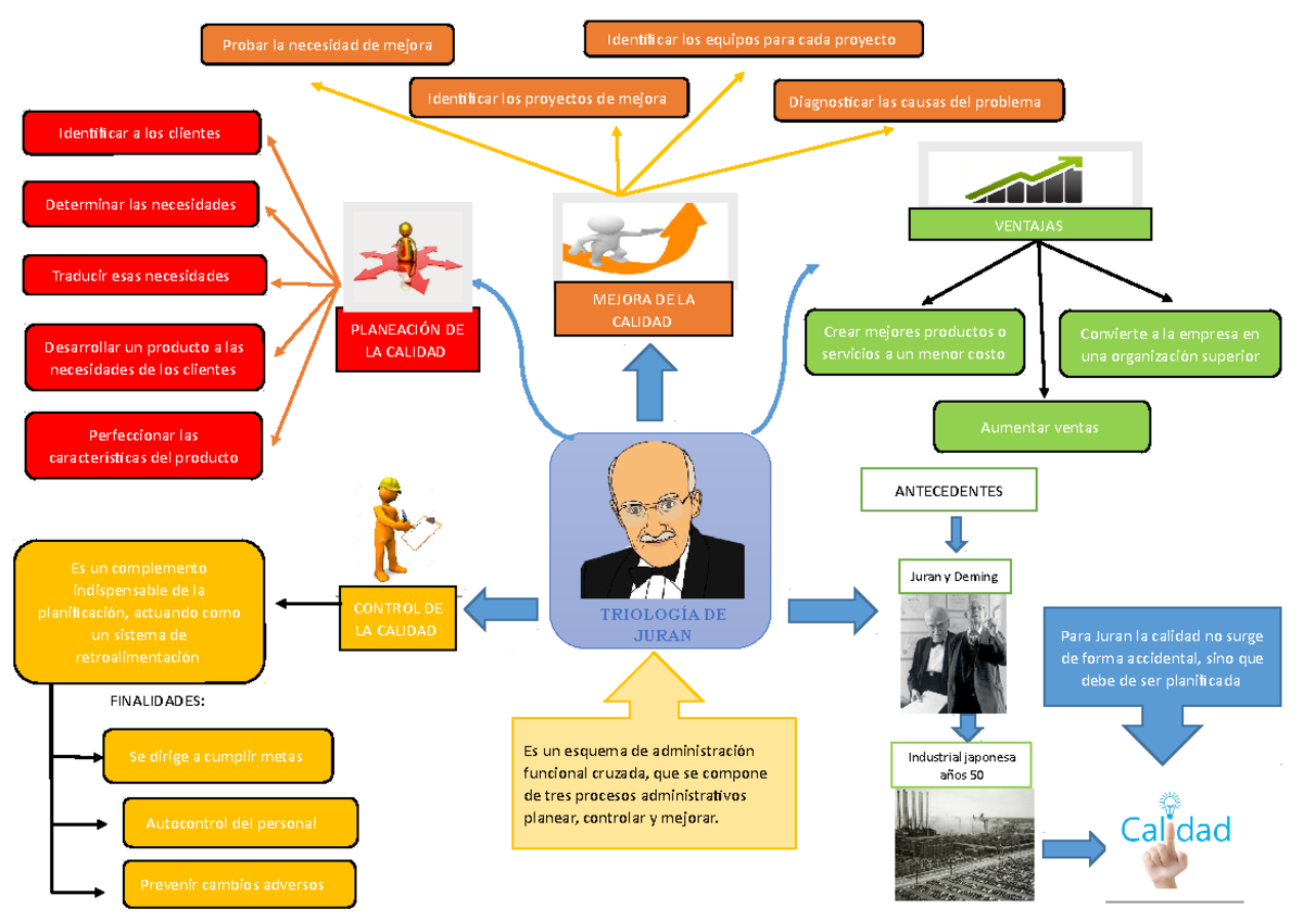Cabe resaltar que Joseph Juran es uno de los principales exponentes de la administración de la calidad total. Por lo tanto, su modelo (trilogía de juran) busca que una empresa logre implementar la calidad total. La Trilogía de la Calidad explicada por Juran nos dice que cualquier organización que emprenda un viaje en la gestión de la.