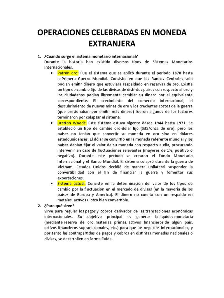 Operaciones Celebradas en Moneda Extranjera PDF Dinero Mercado de divisas