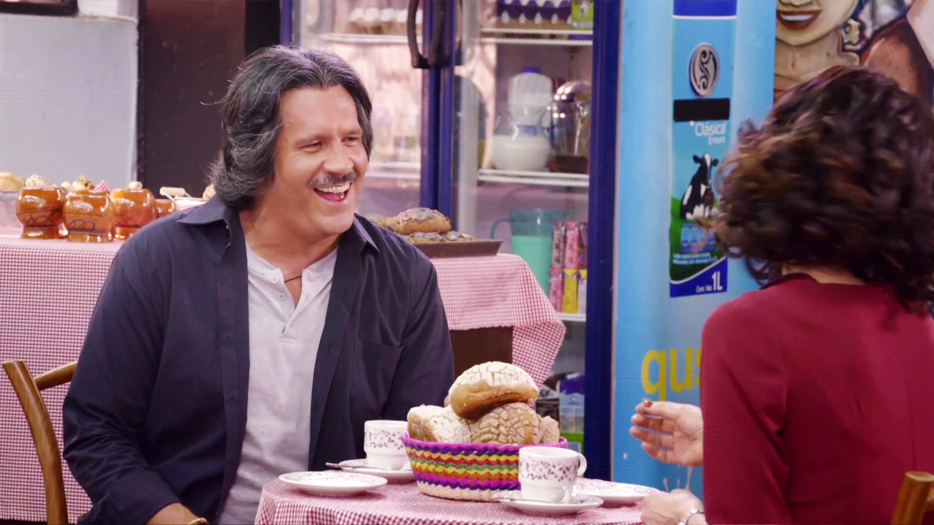 Pancho López llega a "Mi marido tiene más familia" Silvia Pinal, Arath de la Torre, Juan Osorio y Zuria Vega se reunieron en la panadería Córcega