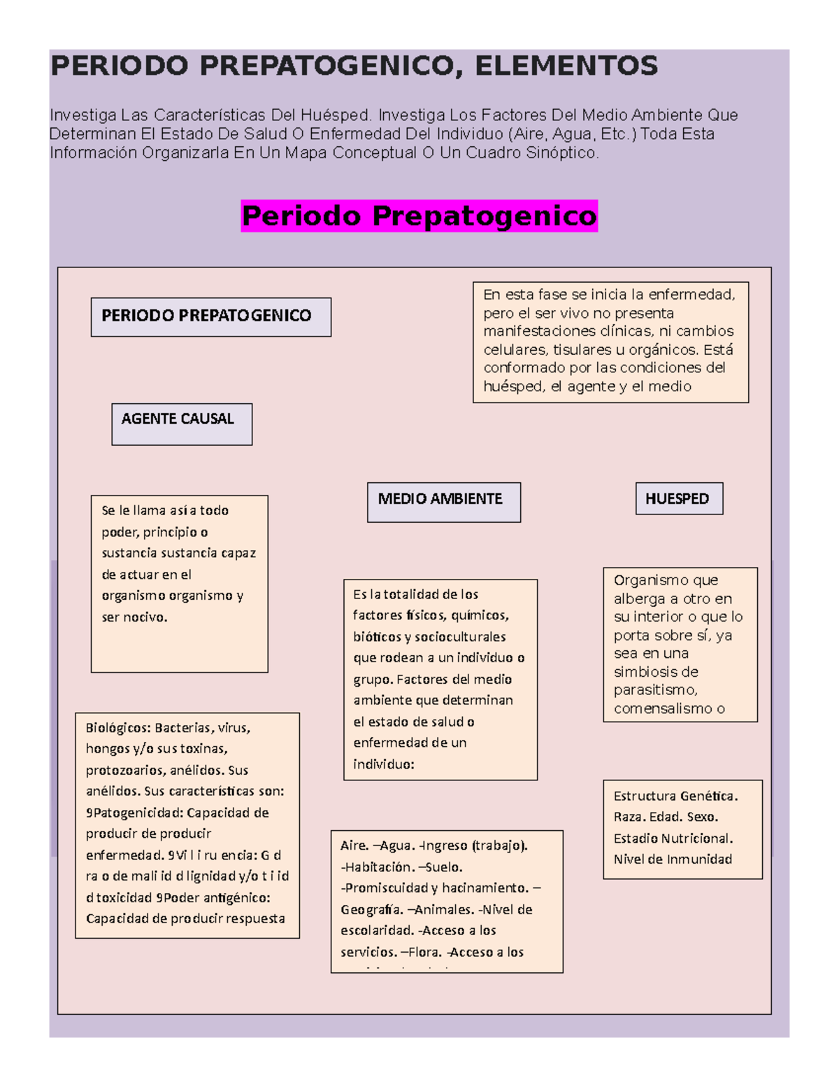 Periodo Prepatogenico PERIODO PREPATOGENICO, ELEMENTOS Investiga Las Características Del