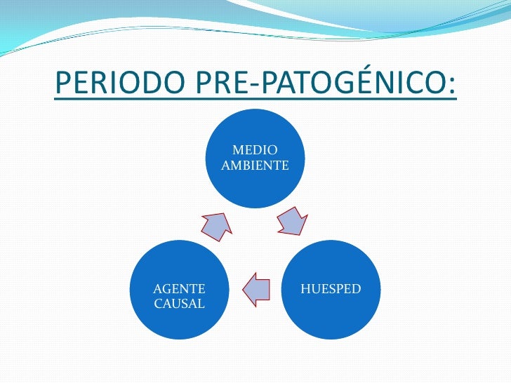 El período prepatogénico es el primer paso del proceso de la historia natural de la enfermedad. Esta historia natural hace referencia a los acontecimientos que ocurren durante la progresión de una enfermedad a través del tiempo. La historia natural de la enfermedad sigue al individuo y el ambiente donde se encuentra durante el proceso que.