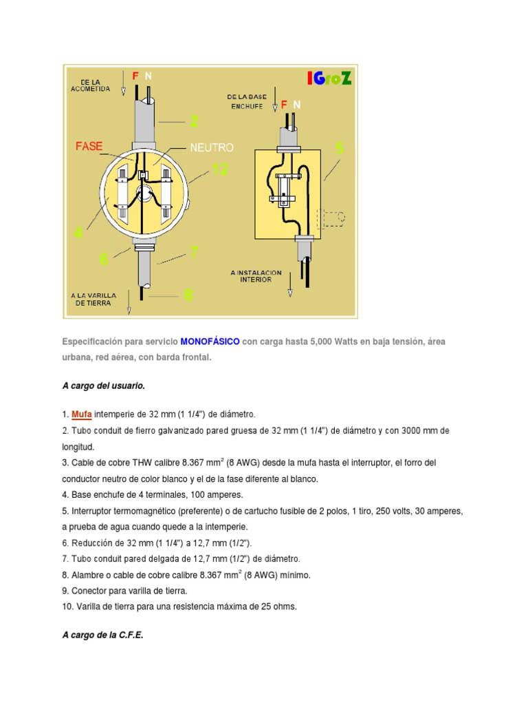 Especificación para Servicio MONOFÁSICO Con Carga Hasta 5 PDF Enchufes y tomas de corriente