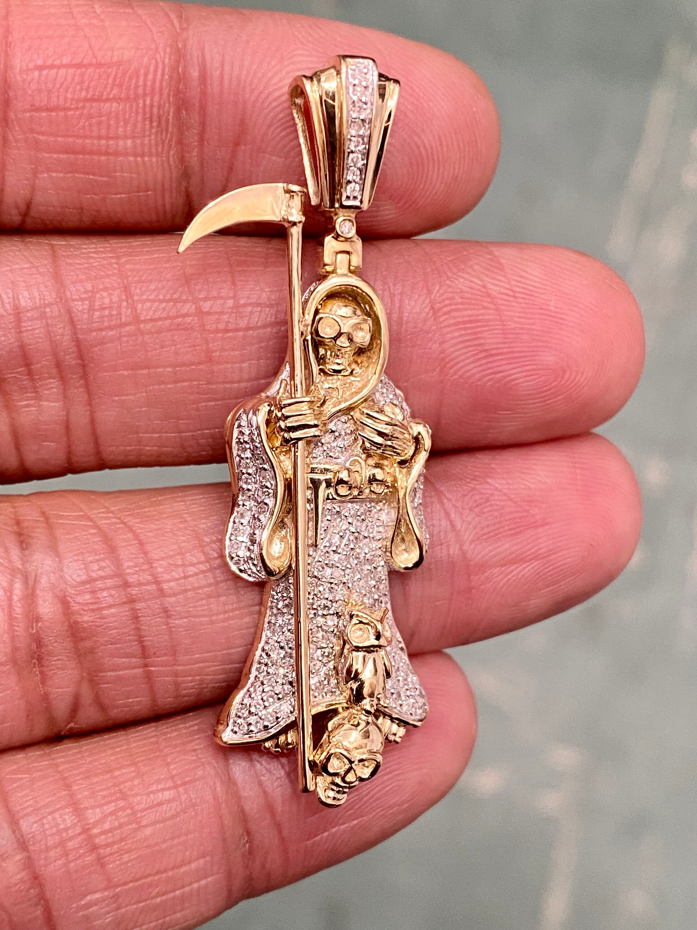 10k Yellow Gold Diamond Santa Muerte Grim Reaper 0.50ct Etsy