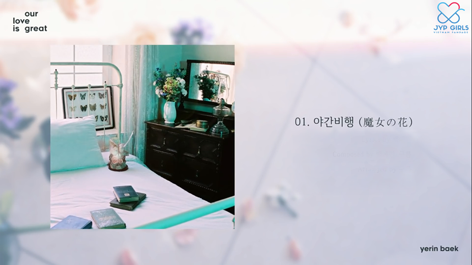 백예린 - Our love is greatRelease Date: 2019.03.18Genre: R&B / Soul, Folk, Jazz Language: KoreanTrack List: 01. 야간비행 (魔女の花)02. 그건 아마 우리의 잘못은 아닐 거야.